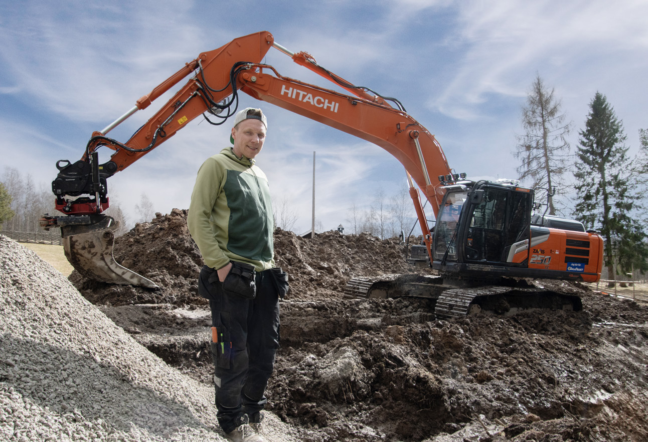– Han kommer att få köra hjulgrävaren som jag själv körde innan jag köpte 250:n, en ZX175W-7. Det slumpade sig så bra att jag hade maskinen och kommer behöva en kille till på projektet i Rättvik. Nu blir det inga fler maskininvesteringar på ett tag. Vi har det vi behöver och jobbar på för fullt med det här projektet, säger Micke Hedberg.
